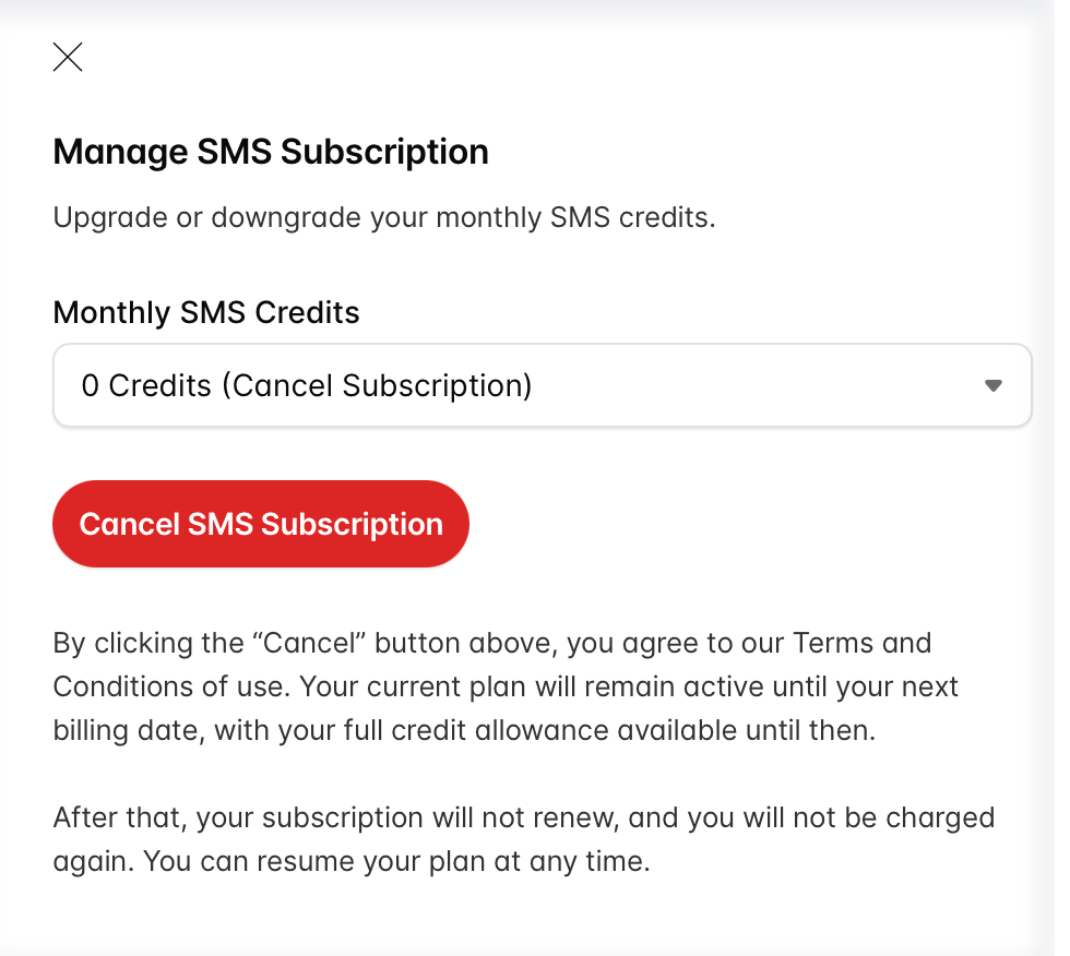 If you need to add more SMS credits or go down to a lower bundle, then you can do that from your account settings.